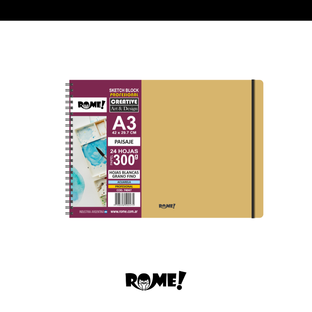 SKETCH BLOCK - A3 - PAISAJE - 24 HOJAS LISAS BLANCAS - 300 G