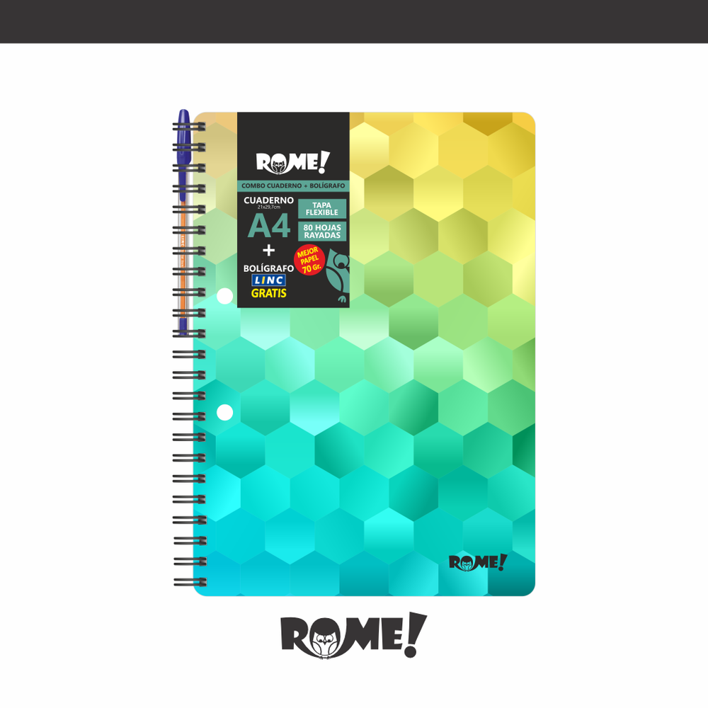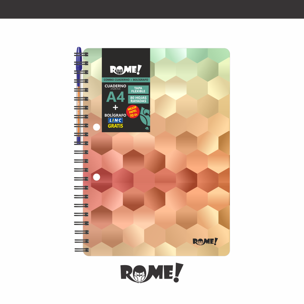 CUADERNO A4 - HEXA - TAPA FLEXIBLE - CON ARCHIVO - CON BOLIGRAFO GRATIS