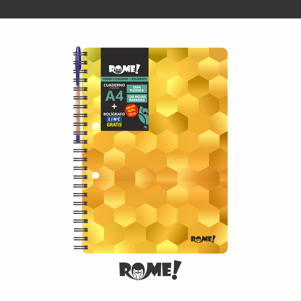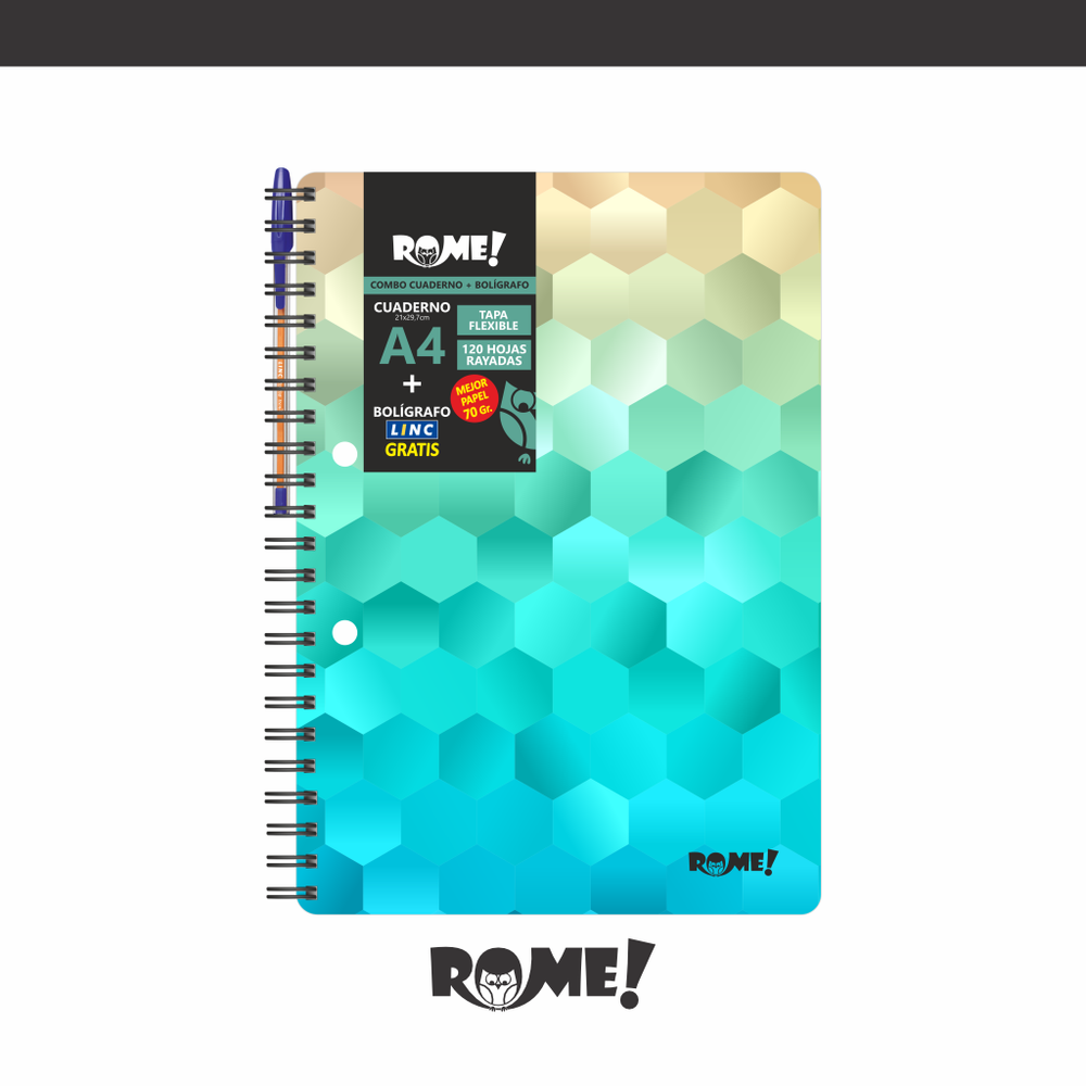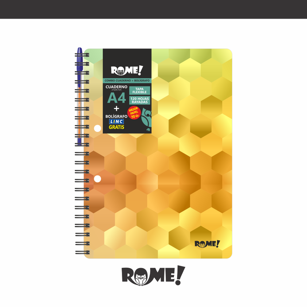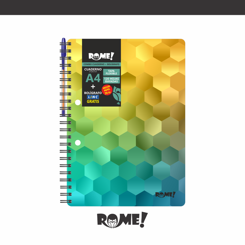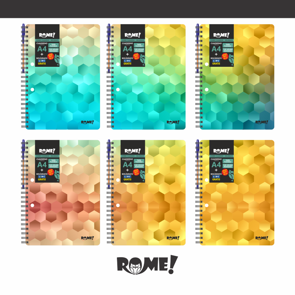 CUADERNO A4 - HEXA - TAPA FLEXIBLE - CON BOLIGRAFO GRATIS