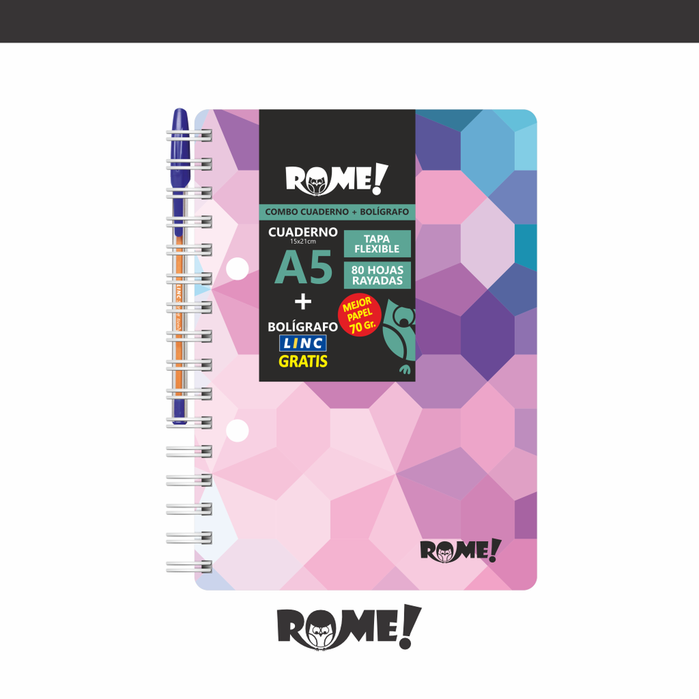 CUADERNO A5 - VITRA - TAPA FLEXIBLE - CON BOLIGRAFO GRATIS