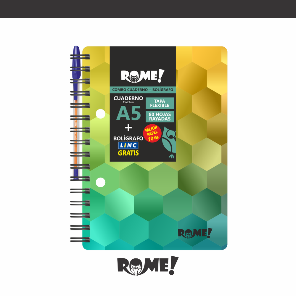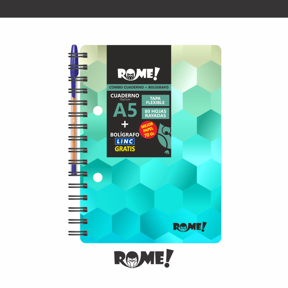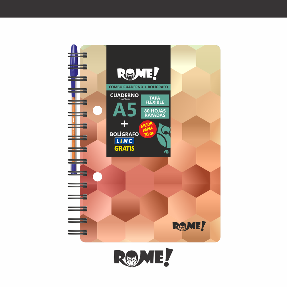 CUADERNO A5 - HEXA - TAPA FLEXIBLE - CON BOLIGRAFO GRATIS