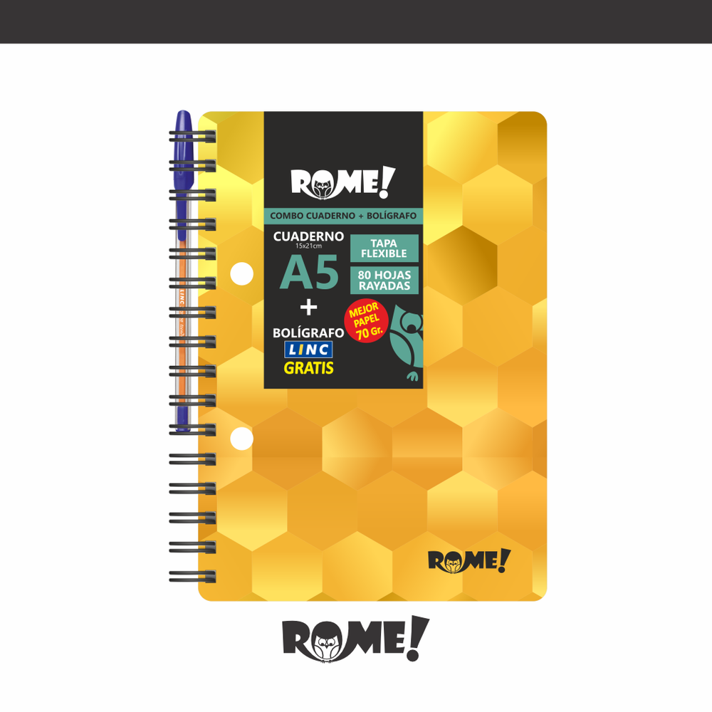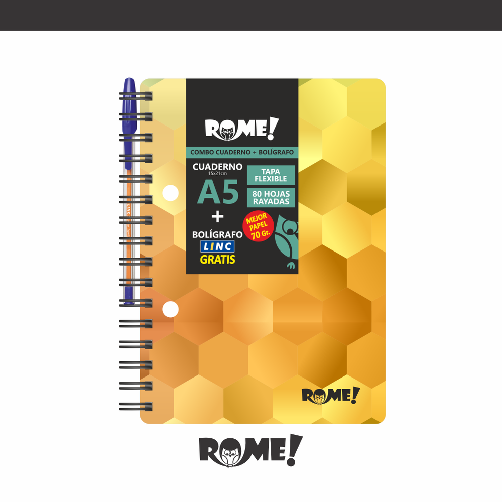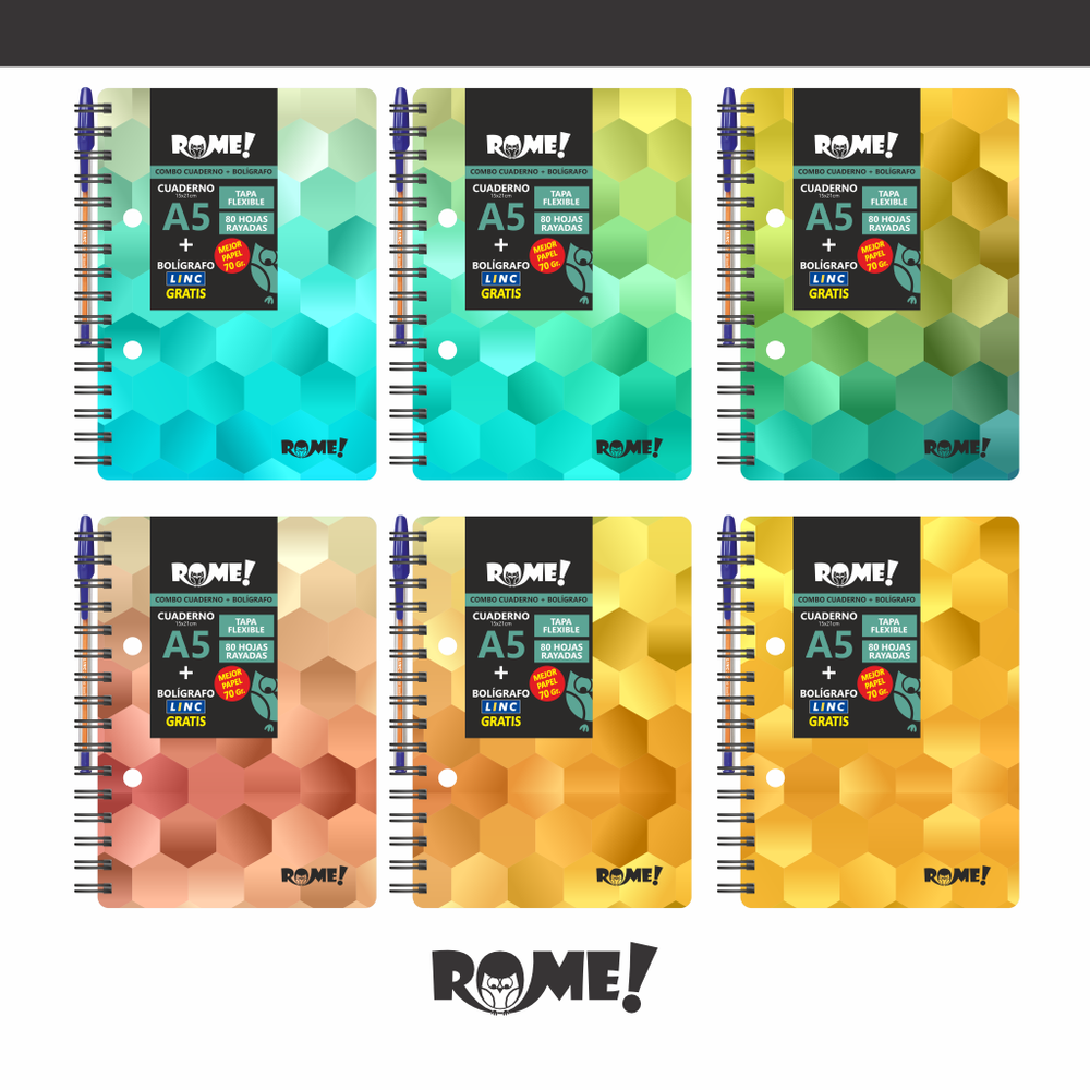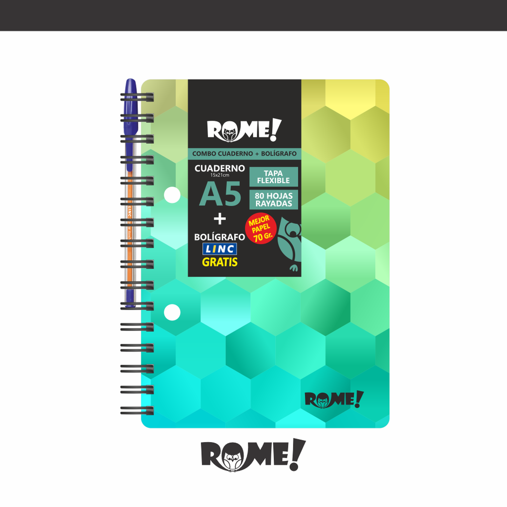 CUADERNO A5 - HEXA - TAPA FLEXIBLE - CON BOLIGRAFO GRATIS
