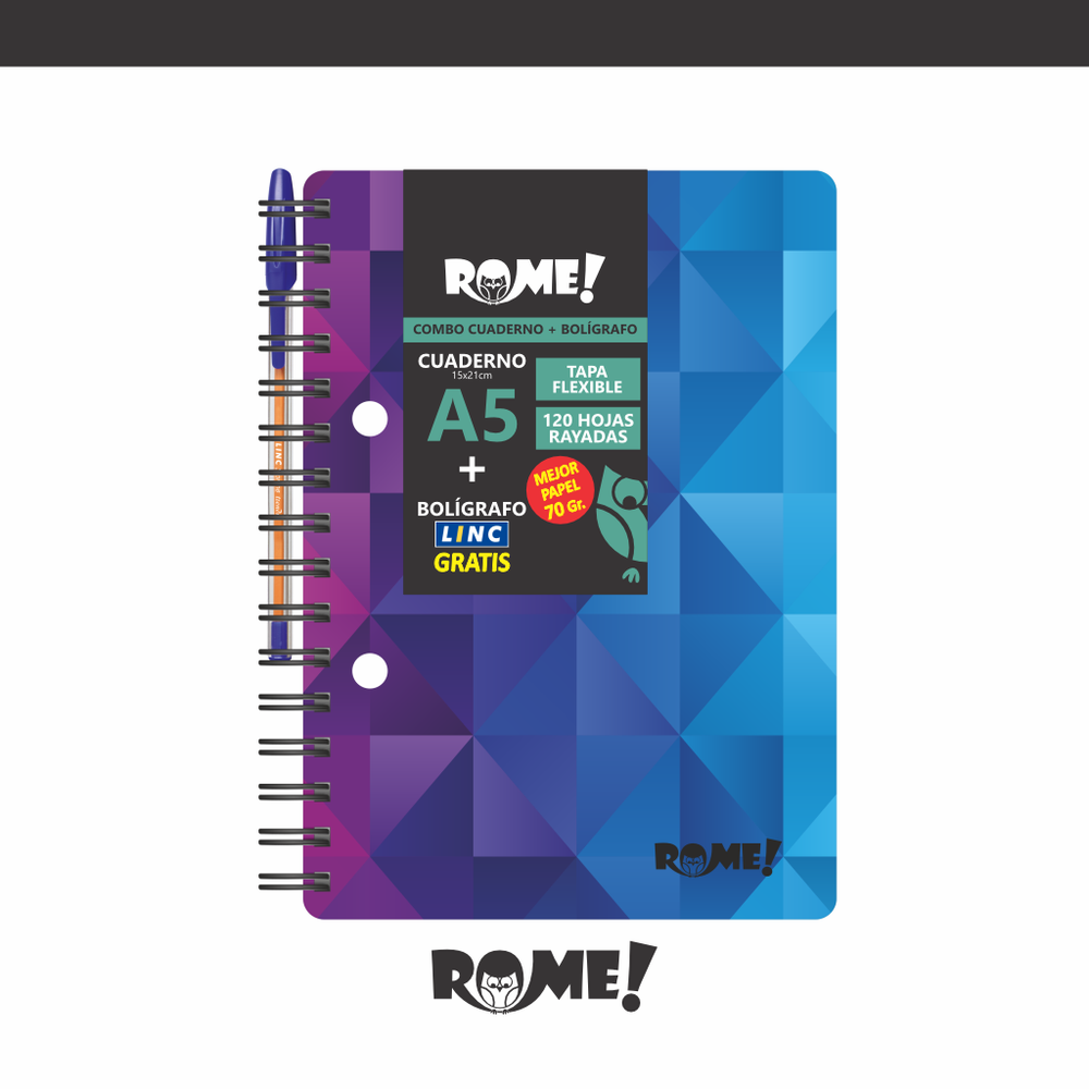 CUADERNO A5 - NOVA - TAPA FLEXIBLE - CON BOLIGRAFO GRATIS